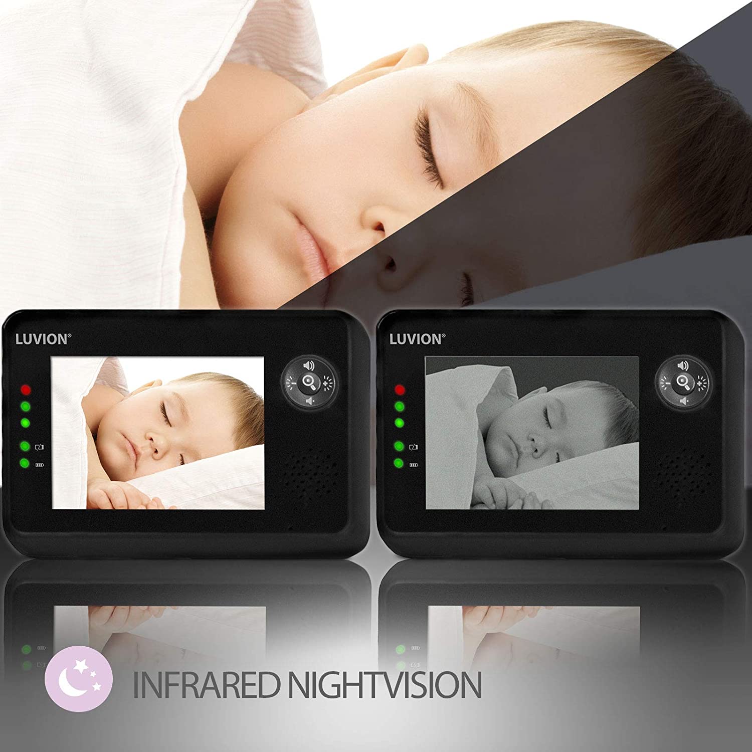 Se og hør barnet ditt dag og natt og vit at barnet har det bra til en hver tid. Luvion gir deg en trendy og innovativ babycall med kamera, som benytter den nyeste teknologien. Du ser barnet ditt klart og tydelig gjennom en 3,5 tommer stor LCD skjerm.